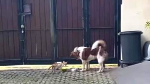 สุดซึ้ง!! พี่หมาใจดี..แบ่งปันอาหารที่มีให้น้องแมวจรที่หิวโซ