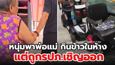 หนุ่มพาพ่อแม่กินข้าวในห้าง แต่ถูกรปภ.เชิญออก อ้างเพราะจอดรถเข็นไฟฟ้ากีดขวางทางเดิน