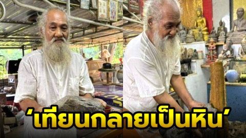 ร่างทรงปู่ฤาษี เล่าสวดมนต์-ทำพิธีทุกวัน จน ‘เทียนกลายเป็นหิน’