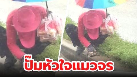 หนุ่มปั๊มหัวใจลูกแมวจร ท่ามกลางสายฝน..เพื่อที่จะให้น้องรอด