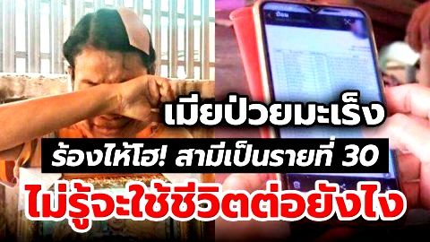 เมียป่วยมะเร็ง ร้องไห้โฮสามีเป็นรายที่ 30 ไม่รู้จะใช้ชีวิตต่อยังไง