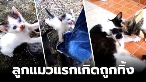 ลูกแมวแรกเกิดถูกทิ้ง..แต่มีคนใจบุญไปช่วยเหลือ