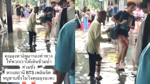 ซึ้งใจ!! คุณลุงขาเทียมใจดี เอาก้อนอิฐมาเรียงให้คนเดินข้ามช่วงฝนตกน้ำท่วมขัง☺