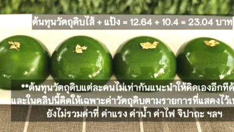 สูตรขนมลืมกลืนใบเตยมะพร้าวอ่อน พร้อมคำนวนต้นทุน