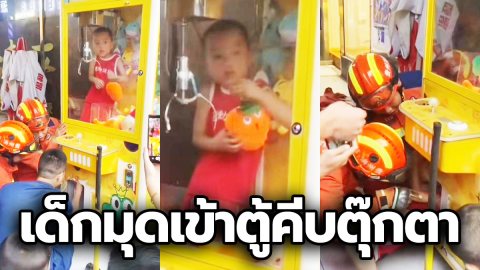 ซนจัด!! เด็กน้อยมุดเข้าตู้คีบตุ๊กตา ติดแหง็กออกไม่ได้ งานนี้ก้านมะยมคงได้ใช้แล้วแหละ😂