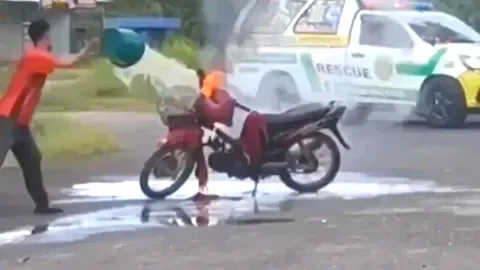 ระทึกเช้า! จยย.ไฟลุกหน้าปั๊มหลังเติมน้ำมัน โชคดีไร้เจ็บ