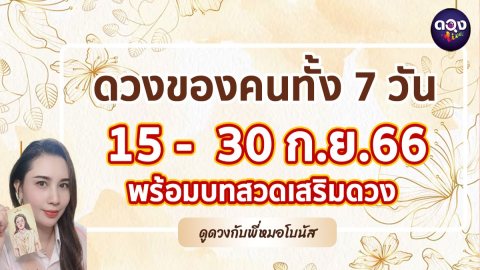 ดวงของคนทั้ง 7 วัน 15 ถึง 30 กันยายน พร้อมบทสวดเสริมดวง พยากรณ์โดย ดูดวงกับพี่หมอโบนัส
