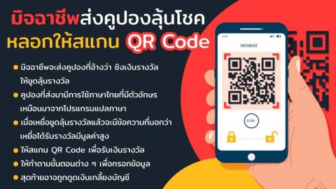มิจฉาชีพส่งคูปองลุ้นโชค หลอกให้สแกน QR Code