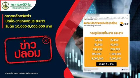 ข่าวปลอม อย่าแชร์! ❌ ตลาดหลักทรัพย์ฯ เปิดซื้อ-ขายกองทุนระยะยาว เริ่มต้น 10,000-5,000,000 บาท