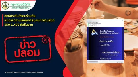 ข่าวปลอม อย่าแชร์! ❌ สิทธิประกันสังคมร่วมกับฝีมือแรงงานแห่งชาติ รับคนทำงานฝีมือ 550-1,400 ต่อชิ้นงาน