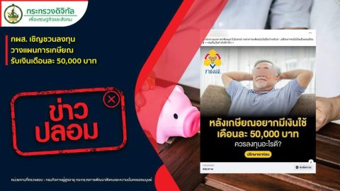 ข่าวปลอม อย่าแชร์! ❌ กผส. เชิญชวนลงทุนวางแผนการเกษียณ รับเงินเดือนละ 50,000 บาท