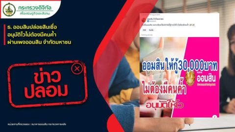 ข่าวปลอม อย่าแชร์! ❌ ธ. ออมสินปล่อยสินเชื่อ อนุมัติไวไม่ต้องมีคนค้ำ ผ่านเพจออมสิน จำกัดมหาชน