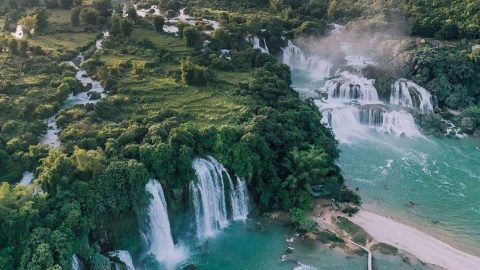 น้ำตกบ่านซก (Ban Gioc Waterfall) หรือน้ำตกเต๋อเทียน (Detian Falls) ที่บริเวณชายแดนจีนและเวียดนาม 💦