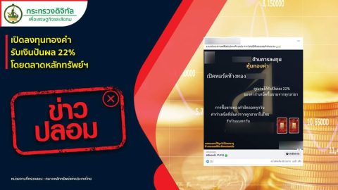 ข่าวปลอม อย่าแชร์! ❌ เปิดลงทุนทองคำรับเงินปันผล 22% โดยตลาดหลักทรัพย์ฯ