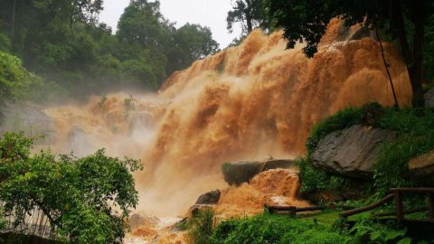 น้ำตกแม่กลางอุทยานแห่งชาติดอยอินทนนท์เปลี่ยนสีแดงเข้ม น่ากลัว