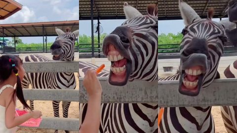 เเค่จะให้อาหารม้าลายเอง เเต่ทำไมถึงตลกขนาดนี้นะ 😂
