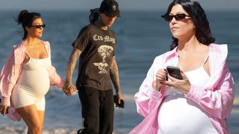 Kourtney Kardashian วัย 44 ปี โชว์หน้าท้องของเธอในชุดคลุมท้องรัดรูป