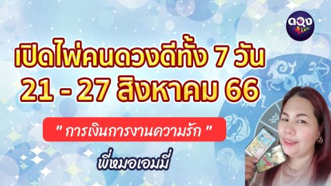 เปิดไพ่คนดวงดีทั้ง 7 วัน 21 - 27 สิงหาคมการเงินการงานความรักโดยพี่หมอเอมมี่