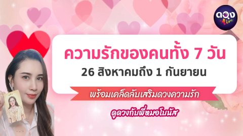 ความรักของคนเกิดทั้ง 7 วัน ระหว่างวันที่ 26 สิงหาคมถึง 1 กันยายน พร้อมเคล็ดลับเสริมดวงความรัก ดูดวงกับพี่หมอโบนัส