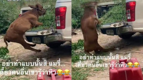 "น้องเเมรี่" วัวอินดี้กับท่ากินหญ้าของเธอ