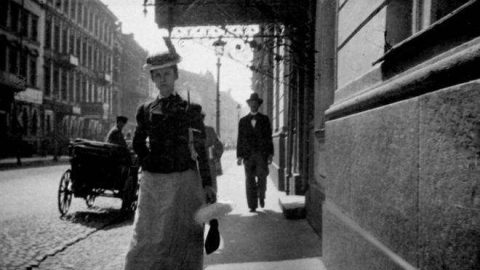ภาพถ่ายเก่าของถนนที่จอแจในเซนต์ปีเตอร์สเบิร์ก ประเทศรัสเซียในศตวรรษที่ 19