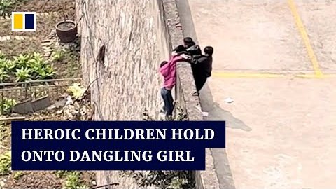 เด็กฮีโร่ในจีนช่วยชีวิตเพื่อนด้วยการยึดมือเด็กหญิงที่ห้อยต่องแต่งอยู่บนกำแพง