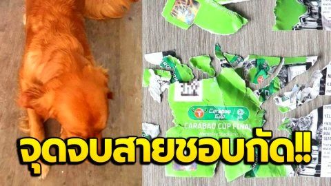 จุดจบสายชอบกัด!! เมื่อแฟนบอลประกาศขายสุนัขของตัวเอง หลังจากที่กัดตั๋วฟุตบอลรอบชิงชนะเลิศขาดไม่เหลือชิ้นดี