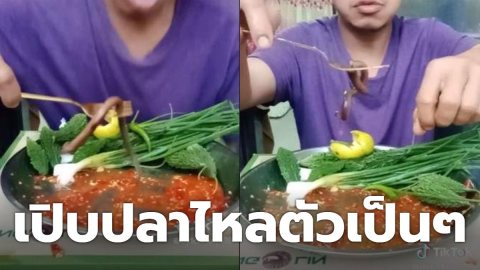 หนุ่มโชว์เปิบพิสดาร กินปลาไหลสดๆ ตัวเป็นๆ โอ้ย!!มันยังดิ้นอยู่เลยคุณขา