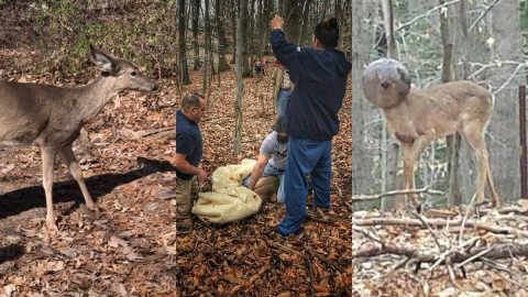 หัว กวาง ป่าติดอยู่ที่โป๊ะแก้ว ลักษณะ ราวกับสัตว์ประหลาด