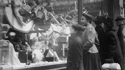 รูปวันคริสต์มาส : นิวยอร์ก สหรัฐอเมริกา ในวันคริสต์มาสปี 1910 ฝูงชนช้อปปิ้งประจำปี