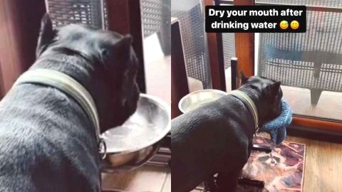 เเม่สอนว่ากินน้ำเสร็จ ต้องเช็ดปาก