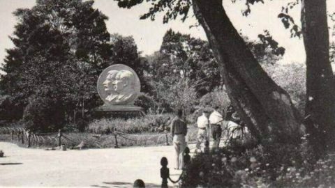 รูปภาพเก่าๆ หาดูยาก ของสวนสาธารณะในเซี่ยงไฮ้ในปี 1950 ภาพของสตาลินแขวนอยู่ในสวนสาธารณะ