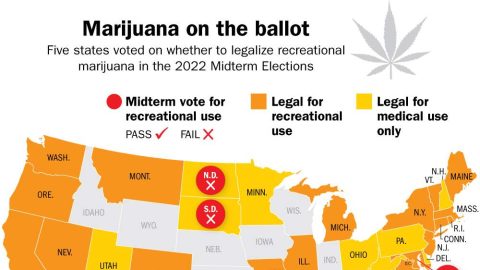 สหรัฐอเมริกา: ผลโหวตให้กัญชาเพื่อสันทนาการถูกกฎหมาย ใน 5 รัฐ พร้อมการเลือกตั้งกลางเทอม 8 พ.ย. ที่ผ่านมา