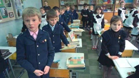 ประวัติศาสตร์ : โรงเรียนใน มอสโก สหภาพโซเวียต 1986 รูปเลนินแขวนอยู่หน้าห้องเรียน