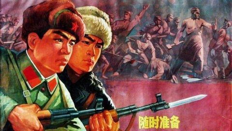 โปสเตอร์โฆษณาเก่า ปี 1970 พร้อมที่จะทำลายล้างศัตรูที่บุกรุก ยุคที่มีจิตวิญญาณการต่อสู้สูง