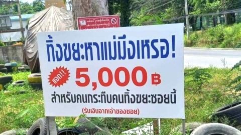ป้ายนี้มีรางวัล!! จ้างกระทืบคนทิ้งขยะในพื้นที่ส่วนบุคคล
