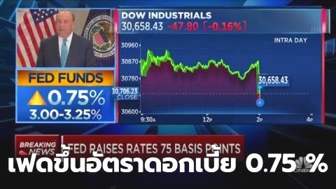 เฟดขึ้นอัตราดอกเบี้ย 0.75 % เพื่อต่อสู้กับเงินเฟ้อ