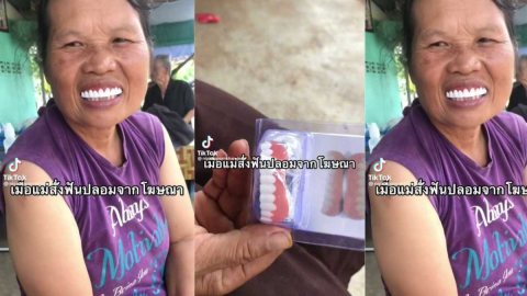 ฮาไม่ไหว เมื่อแม่สั่งฟันปลอมออนไลน์ ไม่ตรงปกโฆษณาบอกใส่กัดแอปเปิ้ลได้ แต่ความจริงคือแบบนี้ !
