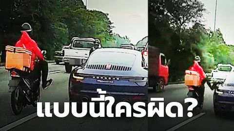 ไรเดอร์ขาโหด! เห็นปอร์เช่เปลี่ยนเลนกะทันหัน ถีบกระจกกระเด็น ถกกันสนั่น แบบนี้ใครผิด?