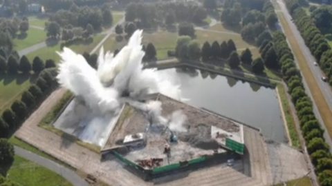"ลัตเวีย" โค่นอนุสาวรีย์ยุคโซเวียตขนาด 79 เมตร