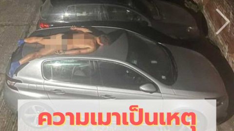 ตะลึง หนุ่มเมาหนัก นอนแก้ผ้ๅแบบนี้บนหลังคารถ
