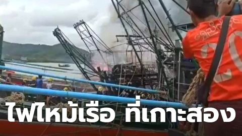 เกิดเหตุเพลิงไหม้เรือประมงเมียนมาร์ ขณะจอดเทียบท่าอยู่ที่ท่าเรือเกาะสอง