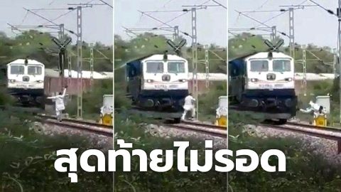 นาทีระทึก!! หนุ่มโบกมือให้รถไฟหยุด ขอข้ามทาง สุดท้ายไม่รอด