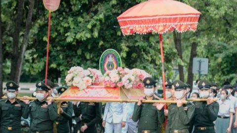 สวยงามตามท้องเรื่อง" ส่องพิธีถวายบังคมอัญเชิญพระราชลัญจกรราชภัฏศรีสะเกษ ประดับเข็มนักศึกษาปี 1