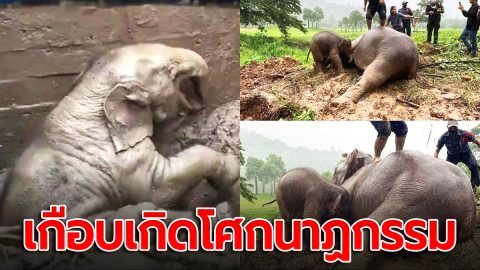 ช่วยเหลือลูกช้างตกท่อ แม่ช้างเครียดจนช็อคล่าสุด ปลอดภัยทั้งคู่