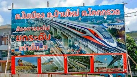 เป็นเรื่อง!!ชาวบ้านคัดค้านการสร้างไฟความเร็วสูงในเขตเมืองโคราชขึ้นป้าย"ต้องการรถไฟทางยกระดับเท่านั้น"