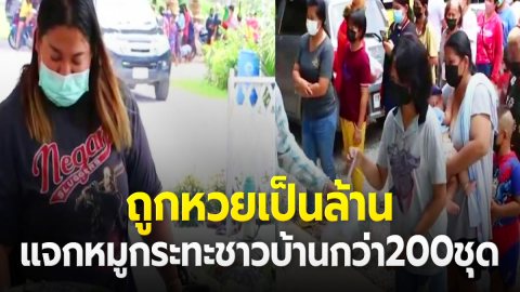 สาวดวงเฮ็ง! ถูกหวยเป็นล้าน แจกหมูกระทะชาวบ้านกว่า200ชุด