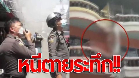 หนีตๅยระทึก! คู่รักเปลือยกายปีนหนีตๅยลงหน้าระเบียง หลังเกิดเหตุไฟไหม้บนชั้น4