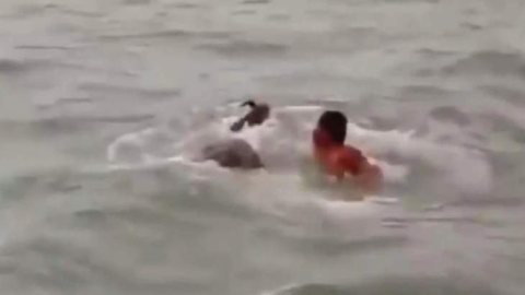 งงกันทั้งเรือ!เมื่อชาวประมงไปเจอ"กวาง2ตัวลอยคอกลางทะเล"