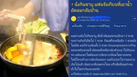 หนุ่มเลิกกับแฟน!! เพราะน้ำอัดลมขวดเดียวในร้านชาบู